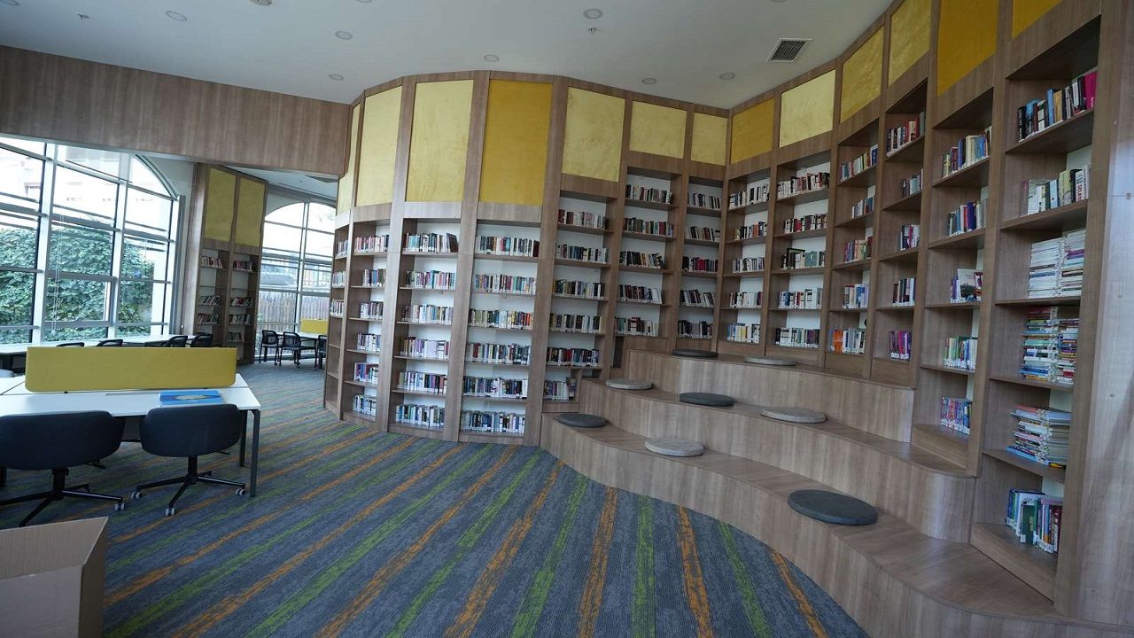 Daha geniş, modern ve işlevsel bir yapıya kavuşturulan kitaplık, kütüphaneye dönüştürüldü. Kitap koleksiyonu da zenginleştirilen kütüphanede, öğrencilerin rahatça ders çalışabileceği, ücretsiz internetten faydalanabileceği, aydınlık, sessiz ve ferah bir ortam oluşturuldu.