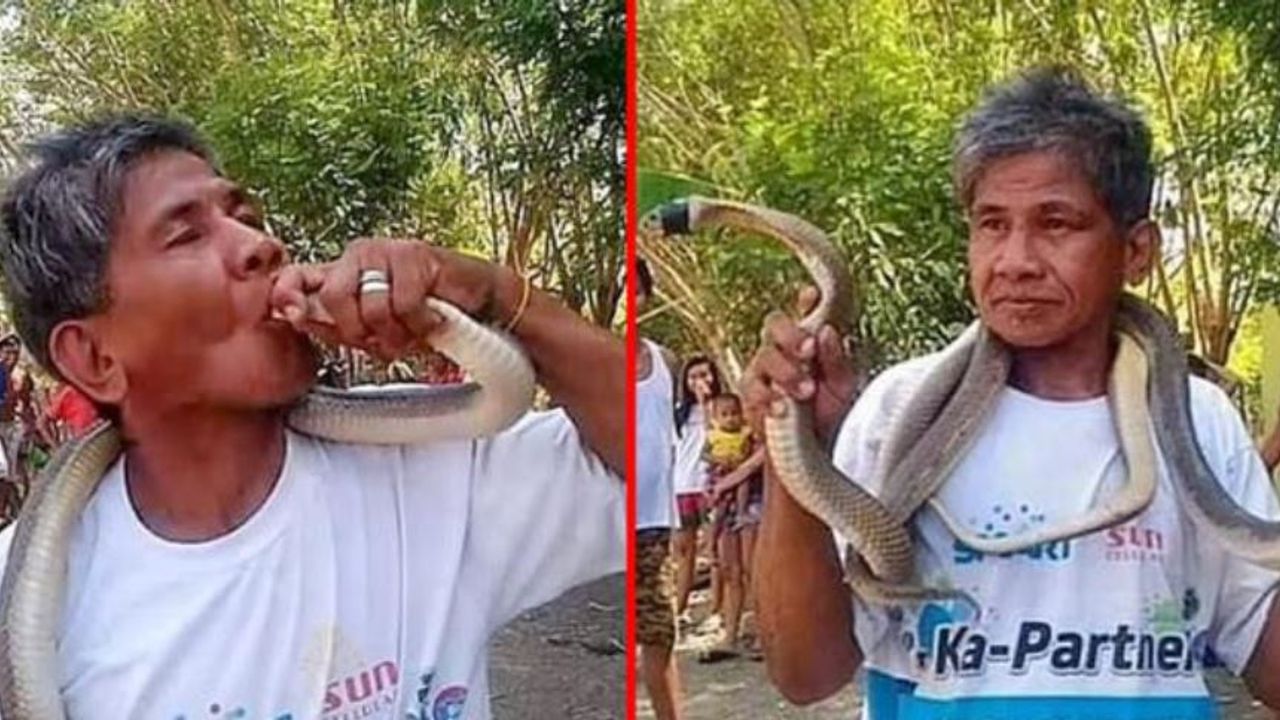Filipinlerin Pangasinan şehrinde yaşayan 62 yaşındaki yılan uzmanı Bernardo Alvarez, yılanlarla yaptığı gösterilerle tanınıyordu. Yılan zehrine karşı bağışıklığı olduğunu iddia eden adam, yine bir yılanla gösteri yapmak istediği sırada feci şekilde can verdi.KOBRANIN KAFASINDAN TUTUP ÖPMEYE ÇALIŞTI