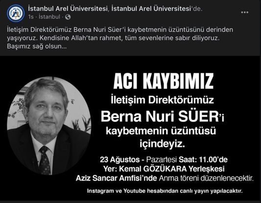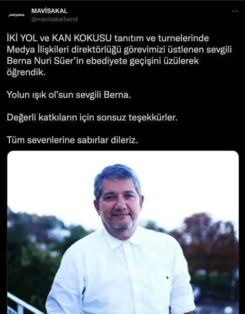 “İletişim Direktörümüz Berna Nuri Süer’i kaybetmenin üzüntüsünü derinden yaşıyoruz. Kendisine Allah’tan rahmet, tüm sevenlerine sabır diliyoruz.“