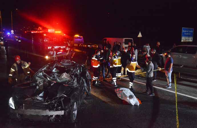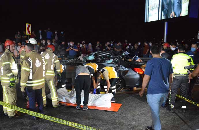 Beykoz'da lastiği patlayan otomobil, önce refüjde bulunan aydınlatma direğine çarptı ardından savrularak karşı şeritte seyir halindeki otomobilin üzerine düştü. Kazada üç kişi hayatını kaybederken biri ağır üç kişi de yaralandı.