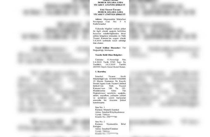 Cumhuriyet’ten Bora Erdin’in haberine göre, Cumhurbaşkanı Recep Tayyip Erdoğan’ın çocukları Sümeyye Erdoğan Bayraktar ve Bilal Erdoğan’ın ortağı olduğu ve 2009 yılında kurulan “Doruk Izgara” isimli şirket, 2015 yılında Arap alfabesi ile yazılan ‘Gel Keyfim Gel’ isimli bir restoranın isim haklarını tescil ettirdiği öne sürüldü. Resmi kayıtlarda ‘Yiyecek ve içecek sağlanması hizmetleri. Geçici konaklama hizmetleri. Gündüz bakımı (kreş) hizmetleri. Hayvanlar için geçici barınma sağlanması hizmetleri’ iş kolu olarak tescil birine bildirildi. https://tele1.com.tr/bilal-erdogan-devletle-isim-yok-restoranim-var-ekonomik-durumum-iyidir-613090/
