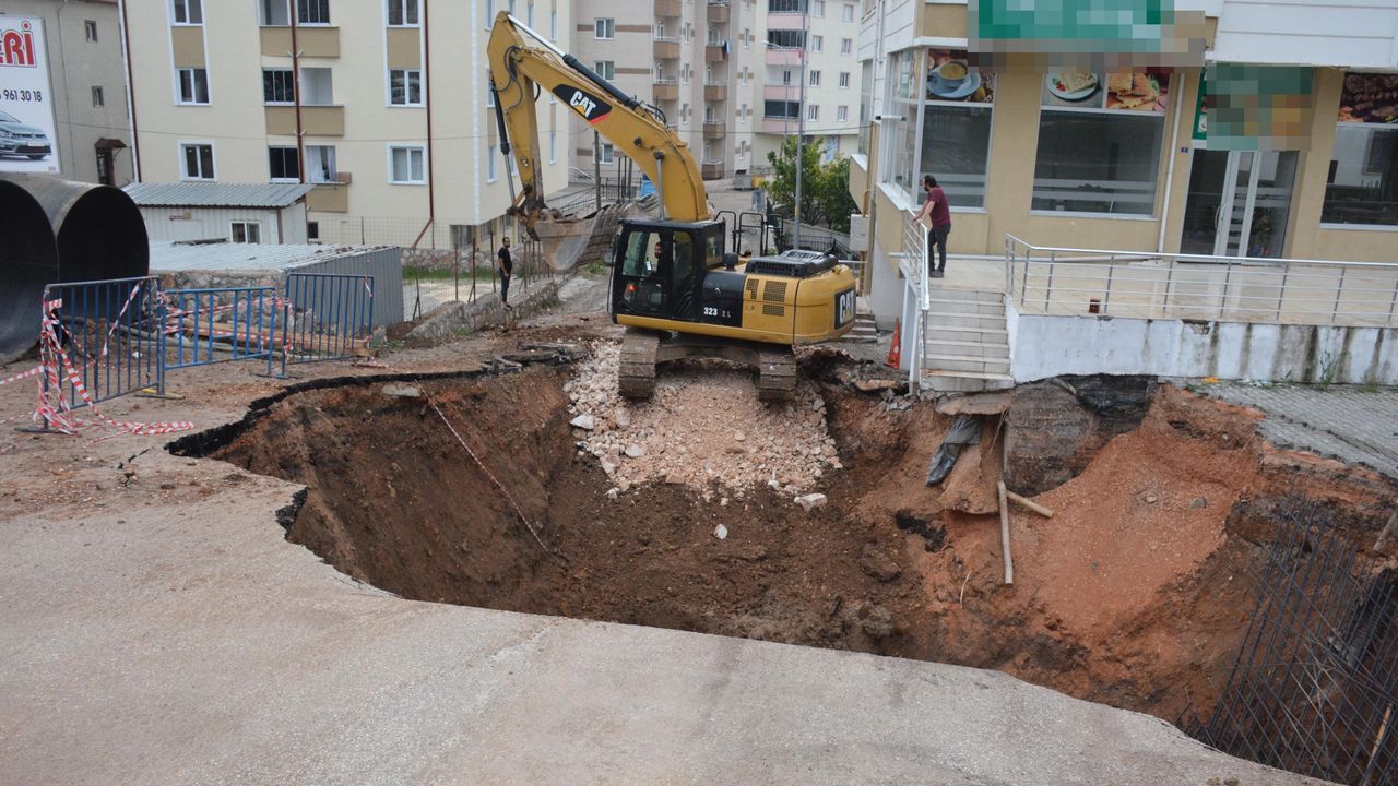 Bilecik'te belediye ekiplerince altyapı çalışması yapılan yolda, yağmurun etkisiyle çökme meydana geldi. Mahallede endişeye yol açan çökme nedeniyle yol, trafiğe kapatıldı. Ekipler, yolda çalışma başlattı.