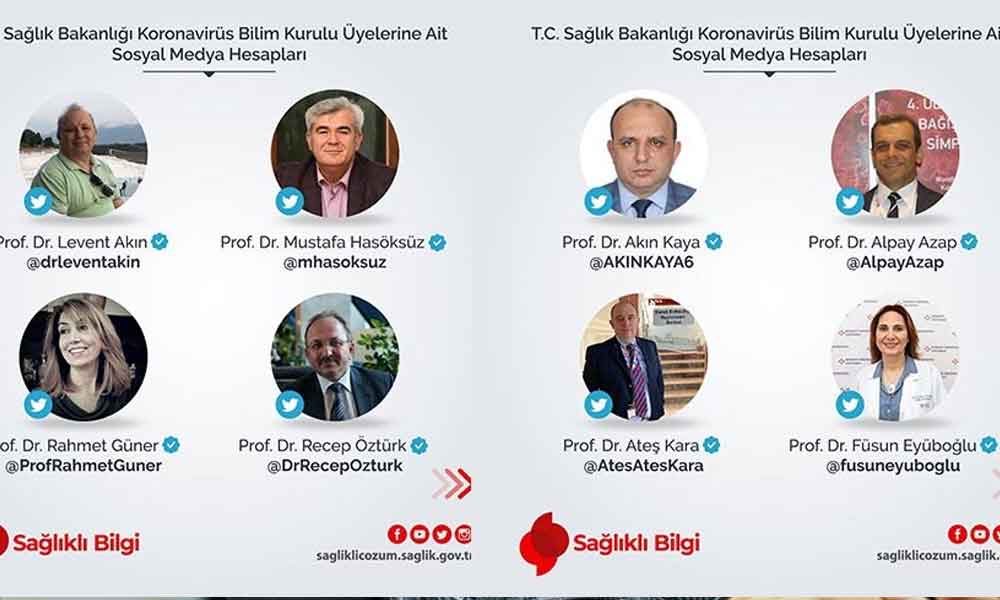 Bilim Kurulu üyelerinin gerçek sosyal medya hesapları da paylaşıldı.
