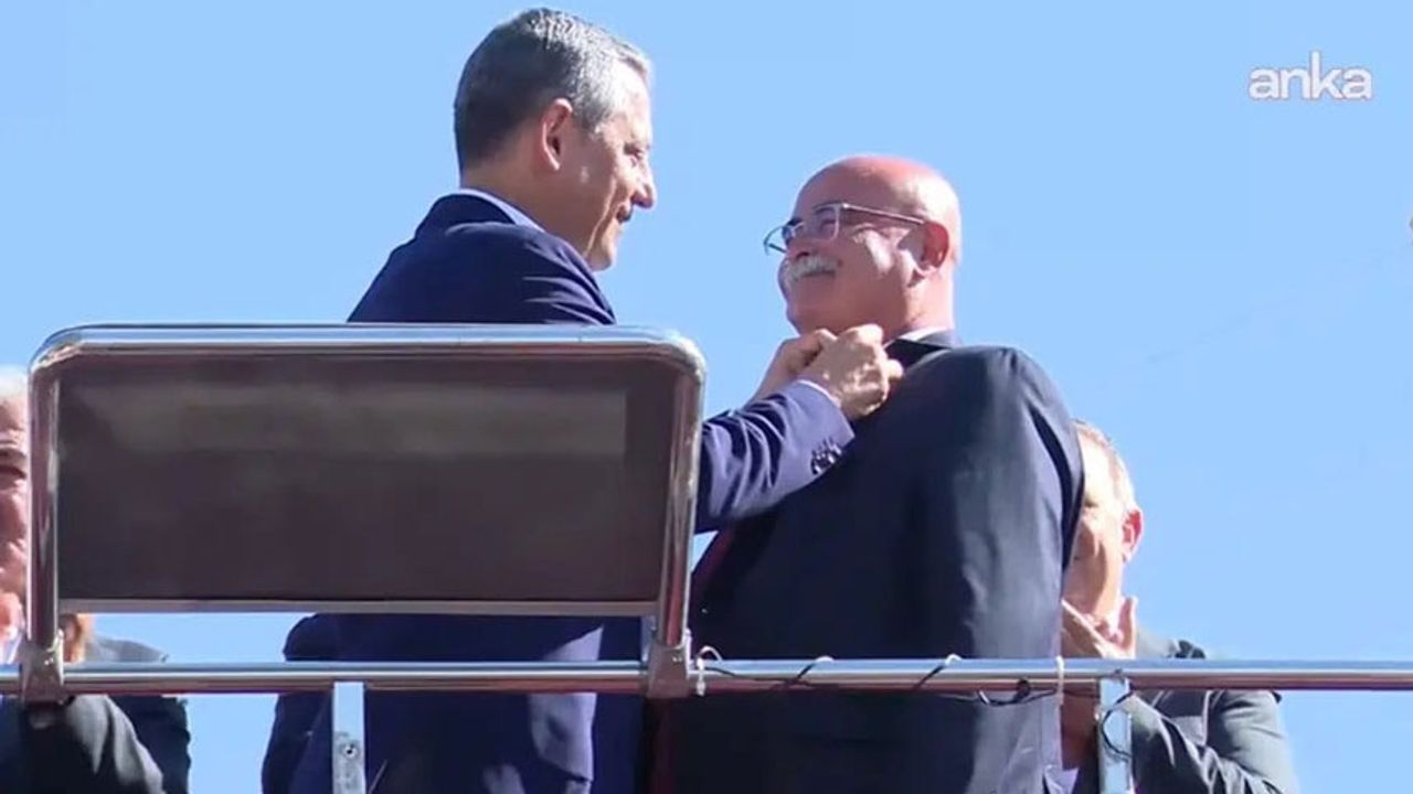 CHP lideri Özgür Özel ve Muharrem İnce Yozgat Bahadın Cumhuriyet Meydanı'nda rozet takma törenine katıldı.
