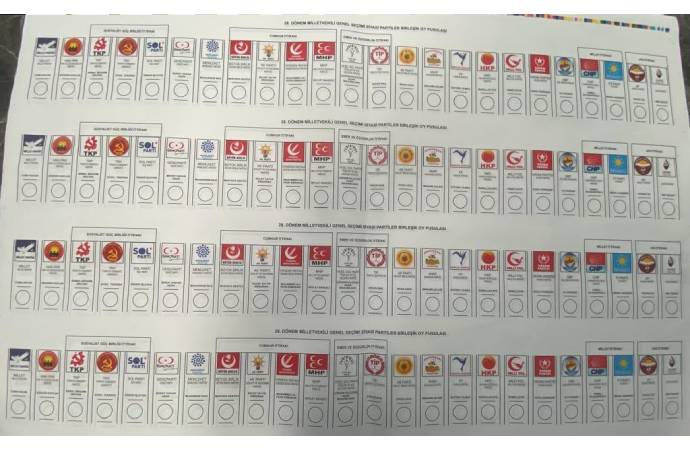 Siyasi partiler ve ittifakların 14 Mayıs'ta yapılacak seçimde oy pusulasında yer alacakları sıra kesinleşti. Boyutu ile dikkat çeken oy pusulası tam bir metre uzunluğunda.
