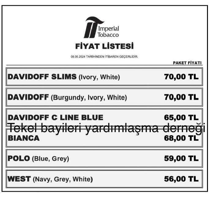 Tekel Bayileri Yardımlaşma Derneği (TBYD) Başkanı Erol Dündar, sosyal medya hesabından Imperial Tobacco sigara grubuna zam geldiğini duyurdu. Gelen zamla birlikte grubun en pahalı sigarası 70 liraya, en ucuz sigarası da 56 liraya yükseldi.
