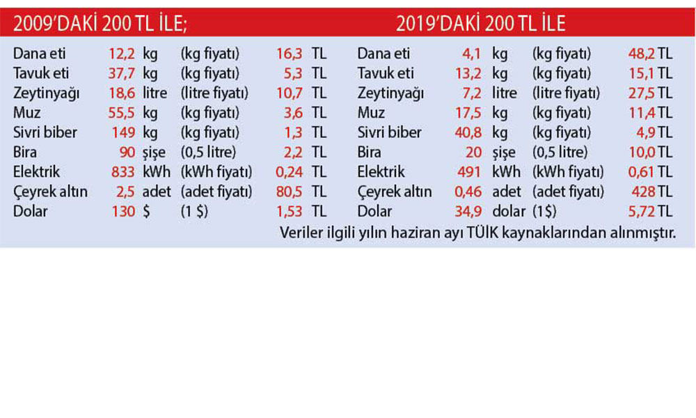 Biz zamanlar bozdurulamadığı için vatandaşlar tarafından tercih edilmeyen 100 ve 200 liralar bugün neredeyse bozuk para değeri taşıyor. 2009’da 200 lira ile alınabilen TÜFE sepeti bugün ancak 506 liraya alınabiliyor. 10 yıl önce kimsenin göremediği ve 8,8 milyon adet bulunan 200 liralardan bugün 192 milyon adedi dolaşımda