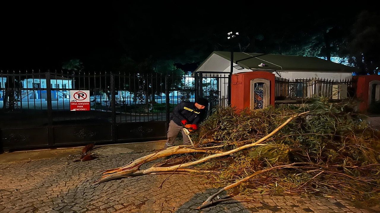 Bodrum Belediyesi Park ve Bahçeler Müdürlüğü ekipleri tarafından devrilen ağaç ve kırılan ağaç dalları ile ilgili de çalışma yapıldı.