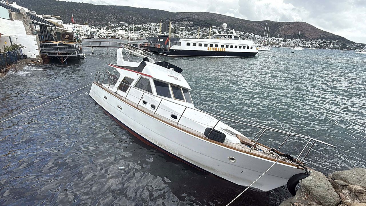 Muğla'nın Bodrum ilçesinde sabah saatlerinde sağanak ve rüzgar etkili oldu. Rüzgarla birlikte Kumbahçe açıklarında demirli 12 metre uzunluğundaki 'Esmer 10' isimli tekne, tonozdan koptu. Tekne dalgaların sürüklemesiyle karaya vurup, hasar aldı.