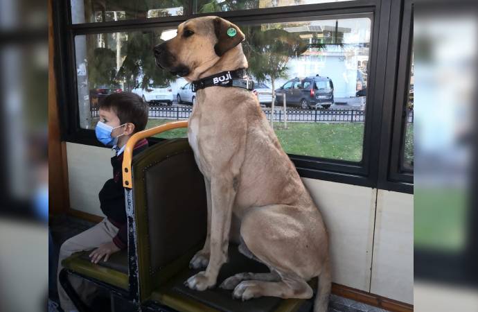 Toplu taşıma araçlarını kullanarak İstanbul’u dolaşan Boji, bugün Kadıköy-Moda tramvay hattını kullandı.