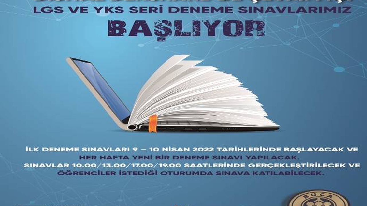 Buca Belediyesi Dijital Dershane’de, Liselere Giriş Sınavı (LGS) ve Yükseköğretim Kurumları Sınavı’na (YKS) hazırlanan öğrenciler için çevrim içi seri deneme sınavları başlıyor. 9-10 Nisan’da ilki gerçekleştirilecek deneme sınavları 10 hafta boyunca devam edecek.