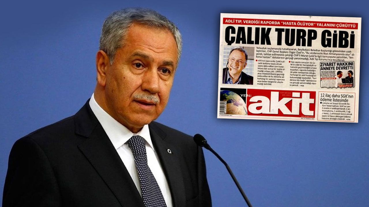 Sağlık sorunlarına rağmen cezaevinde tutuklu bulunan seçilmiş Beylikdüzü Belediye Başkanı Murat Çalık'ı hedef alan gerici Yeni Akit gazetesine bir tepki de AKP kurucularından eski TBMM Başkanı Bülent Arınç'tan geldi.