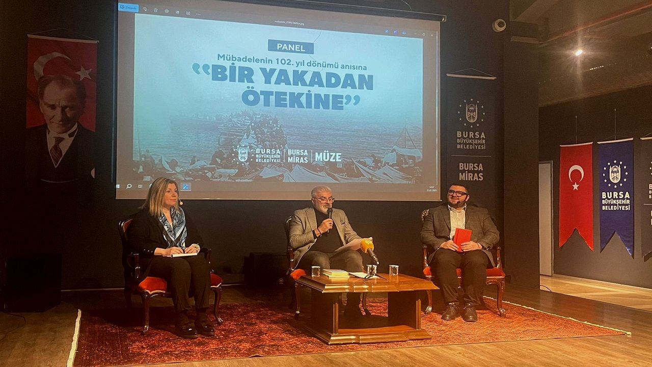 Bursa Büyükşehir Belediyesi Kent Tarihi ve Tanıtımı Dairesi Başkanlığı tarafından Merinos Bursa Müze Etkinlik alanında ‘Bir Yakadan Ötekine’ paneli düzenlendi. Mübadelenin 102. yıl dönümü anısına hazırlanan programa, Bursalılar yoğun ilgi gösterdi. Kent Tarihi ve Tanıtımı Dairesi Başkanı Güney Özkılınç’ın moderatörlüğünü üstlendiği panele, Düzce Üniversitesi Fen Edebiyat Fakültesi’nden Doç. Dr. İsmail Yaşayanlar ve Ankara Üniversitesi Dil Tarih Coğrafya Fakültesi’nden Dr. Maria Ntisli konuşmacı olarak katıldı. Mübadele tarihi ve Bursa üzerine konuşmaların yapıldığı programda, Bursa Göç Tarihi Müzesi koleksiyonunda bulunan 1879 tarihli Tirilye Defteri de ele alındı.
