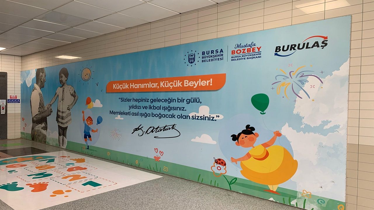 23 Nisan Ulusal Egemenlik ve Çocuk Bayramı’nı coşkuyla karşılamaya hazırlanan Bursa Büyükşehir Belediyesi, BURULAŞ iş birliğiyle Dörtçelik Çocuk Hastanesi Metro İstasyonu’nda tasarlanan Çocuk Dostu Metro İstasyonu’nu törenle hizmete açtı. Kalıcı duvar oyuncakları, oyun alanları ile çocukların konforu düşünülerek hazırlanan istasyonda, basamaklar da öğretici bilgilerde donatıldı. Uyarı levhalarının ve yönlendirmelerin çocukların anlayacağı şekilde yeniden düzenlendiği istasyonda, bebek bakım odası da oluşturuldu. Tüm bilgilendirme ve uyarı anonslarının çocukların sesiyle yapıldığı istasyonda, duvarlar da rengarenk boyandı.
