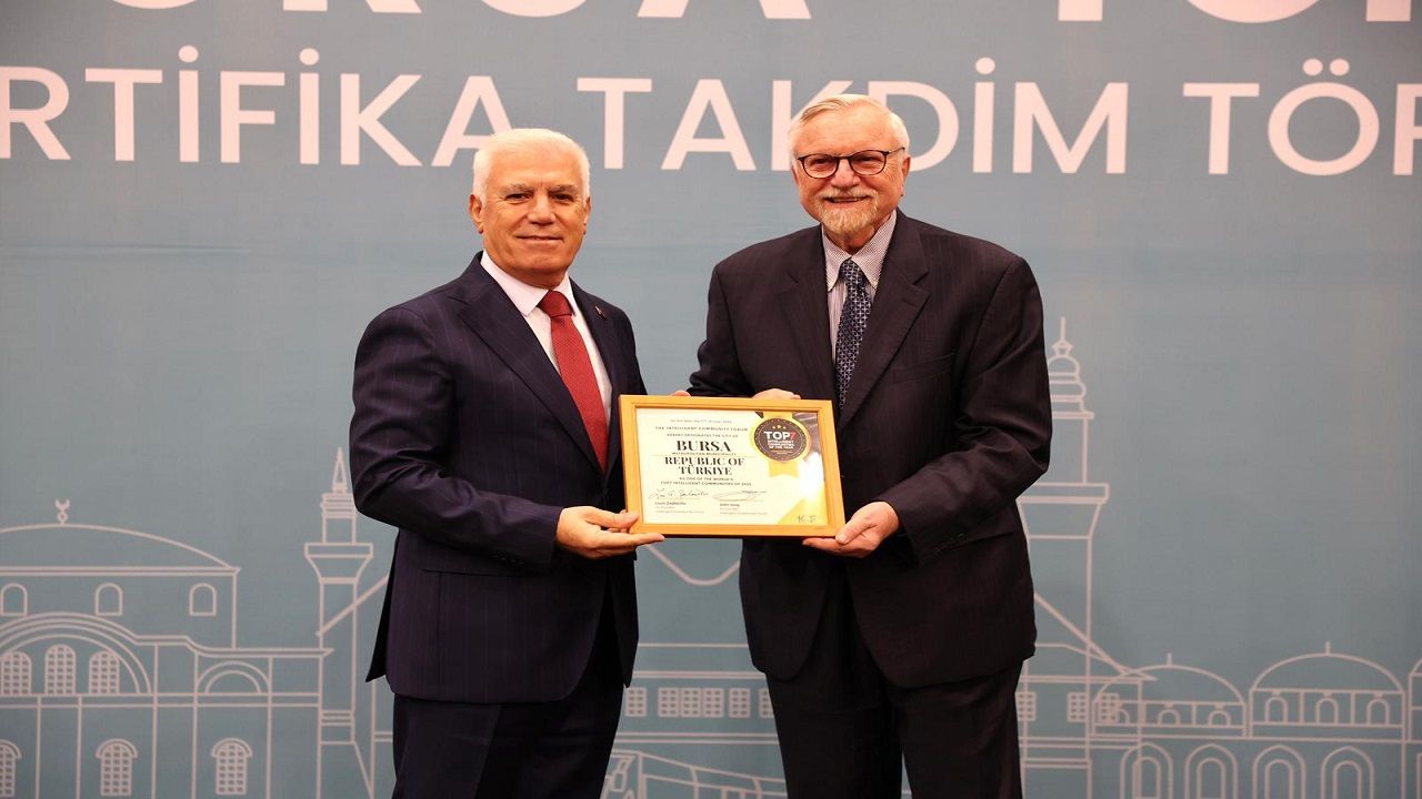 ICF tarafından Bursa’ya verilen ‘Top7’ unvanı için hazırlanan sertifika takdim törenine Atatürk Kültür Merkezi Merinos Yerleşkesi ev sahipliği yaptı. Programa, Marmara Belediyeler Birliği ve Bursa Büyükşehir Belediye Başkanı Mustafa Bozbey’in yanı sıra ICF Kurucu Ortağı John G. Jung, akademisyenler, iş dünyasının ve sivil toplum kuruluşlarının temsilcileri, Büyükşehir Belediyesi bürokratları katıldı. Programda, ‘Bursa’nın akıllı şehre dönüşümü’, ’Bursa Ticaret ve Sanayi Odası’, ‘ULUTEK-Teknopark’, ‘Bursa Erdem Saker Botanik Parkı’nın akıllı dönüşümü’ ve ‘ICF’ tanıtım filmlerinin gösterimi yapıldı.