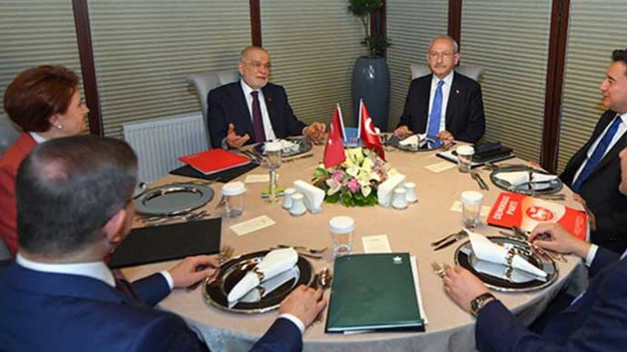 Cumhuriyet'ten Selda Güneysu ve Sarp Sağkal'ın haberine göre; CHP lideri Kemal Kılıçdaroğlu, İYİ Parti lideri Meral Akşener, Saadet Partisi lideri Temel Karamollaoğlu, Gelecek Partisi lideri Ahmet Davutoğlu, DEVA Partisi lideri Ali Babacan ve Demokrat Parti lideri Gültekin Uysal, önceki gün Kılıçdaroğlu’nun ev sahipliğinde, Ankara’da bir araya gelmişti.