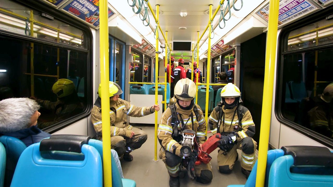 Bursa Büyükşehir Belediyesi, bir taraftan daha konforlu ve erişilebilir ulaşım için toplu taşımada önemli adımlar atarken diğer taraftan yolcu güvenliğini en üst seviyeye çıkarmak için çalışıyor. Bu kapsamda Bursaray hattında olası yangınlara karşı hazırlık düzeyini artırmak ve BURULAŞ ile acil durum ekiplerinin koordinasyon ve iş birliğini güçlendirmek amacıyla yangın tatbikatı gerçekleştirildi. Gece saat 02.00’da yapılan tatbikatta, senaryo gereği Osmangazi-Şehreküstü İstasyonları arasındaki tünelde yangın çıktı.