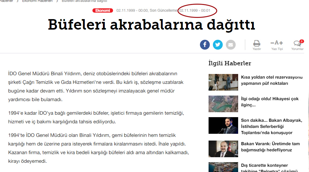 YSK’nin İstanbul Büyükşehir Belediye Başkanlığı seçimlerini iptal etmesinin ardından yeniden adaylık kampanyasını başlatan Binali Yıldırım’ın 1999 yılında akrabalarına İDO’nun büfelerini dağıttığı için görevden alındığı haberi dikkat çekti.