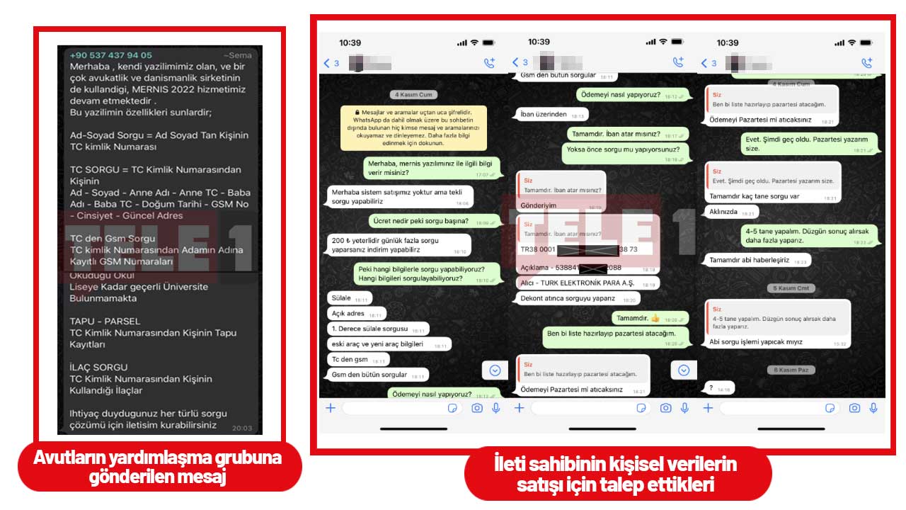 -Bu olay 2022’de yaşandı. Bir arkadaşım, avukatların birbiriyle yardımlaşmak için kurduğu WhatsApp grubunda paylaşılan bir iletiyi benimle paylaştı. İletide, ‘Bizim bir sorgu hizmetimiz var her şeyi kapsıyor. Avukatlar ve danışmanlık şirketi bunu kullanıyor’ diyorlar. Kişilerin; ad-soyad, TC kimlik numarası, MERNİS bilgileri, akraba bilgileri, eğitim bilgileri, gittiği hastane, aldığı tedavi gibi birçok bilgiyi ele geçirmişler. Bunları para karşılığı satıyorlar. Avukatların bir kısmı icra takip gibi süreçlerde kullanıyor. Hasar danışmanlık şirketleri de kullanıyor.