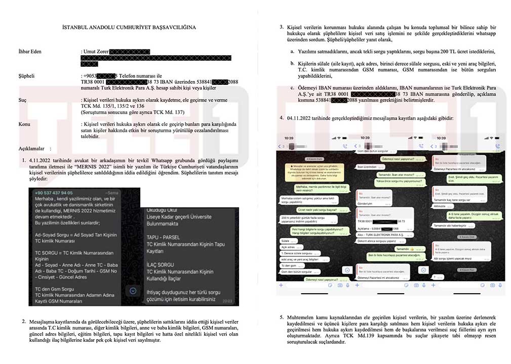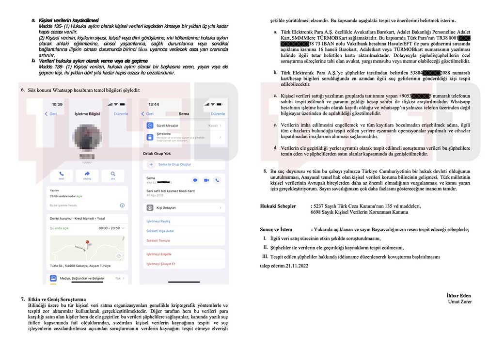 -Ben WhatsApp’tan iletiyi gönderen kişiye yazdım. ‘Böyle bir hizmet veriyormuşsunuz, ne kadara sorgulama yapabilir’ diye sordum. ‘Sorgudan önce mi yoksa sonra mı veriyoruz ücreti’ diye sordum. IBAN verdi. Bu IBAN hukuka uygun bir şekilde hizmet veren bir elektronik para kuruluşunun IBAN’ı. Bunlar bir banka gibi çalışıyor. Baro kartları da böyle bir kart aslında. Ben de baro kartıma bu şekilde para gönderiyorum. O IBAN’ı görünce, ‘herhalde bu bir avukat’ diye düşündüm. Bunun üstüne, bu bilgileri savcılığa verirsem, bu hesabın kime ait olduğu belli, savcılık da bir baskın yaparsa belki de bunun kaynağını bulacaklar diye düşündüm.