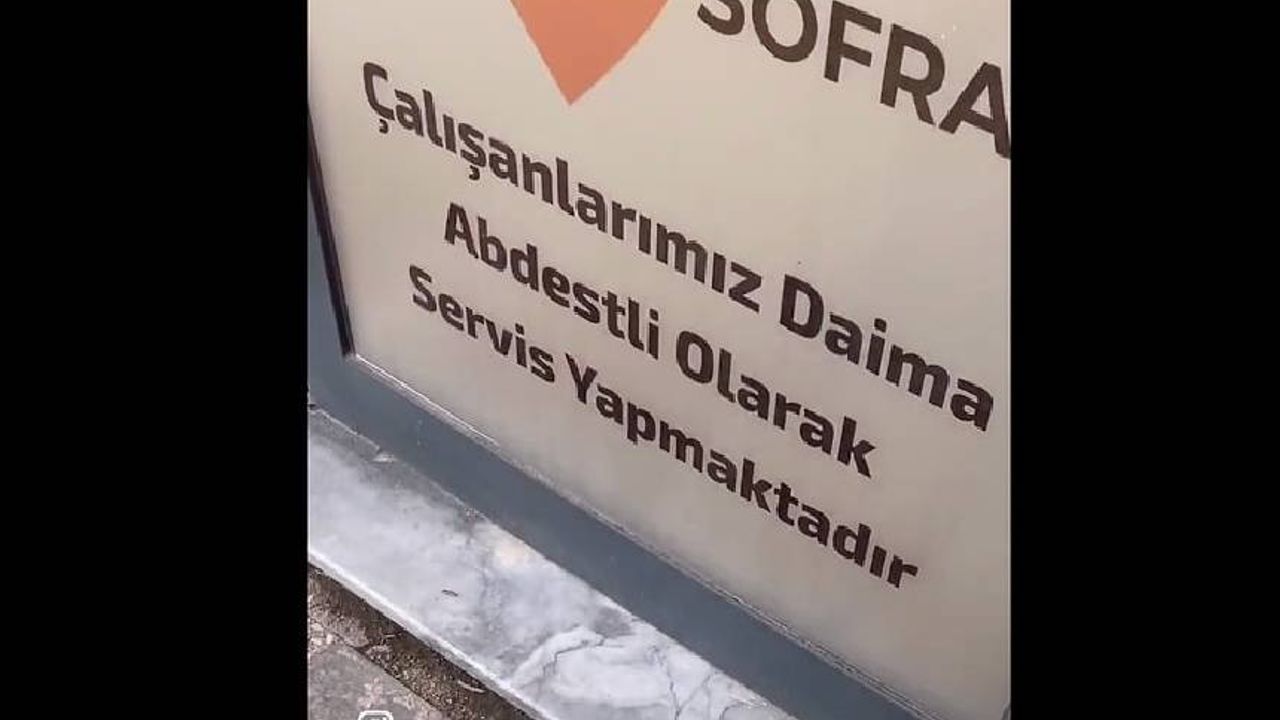 Sakarya'da bir genç, bir işletmenin önünde gördüğü yazıyı paylaştı. Çalışanlarının daima abdestli servis yaptıklarını belirten işletmenin bu kuralı pek çok kişiye garip geldi.