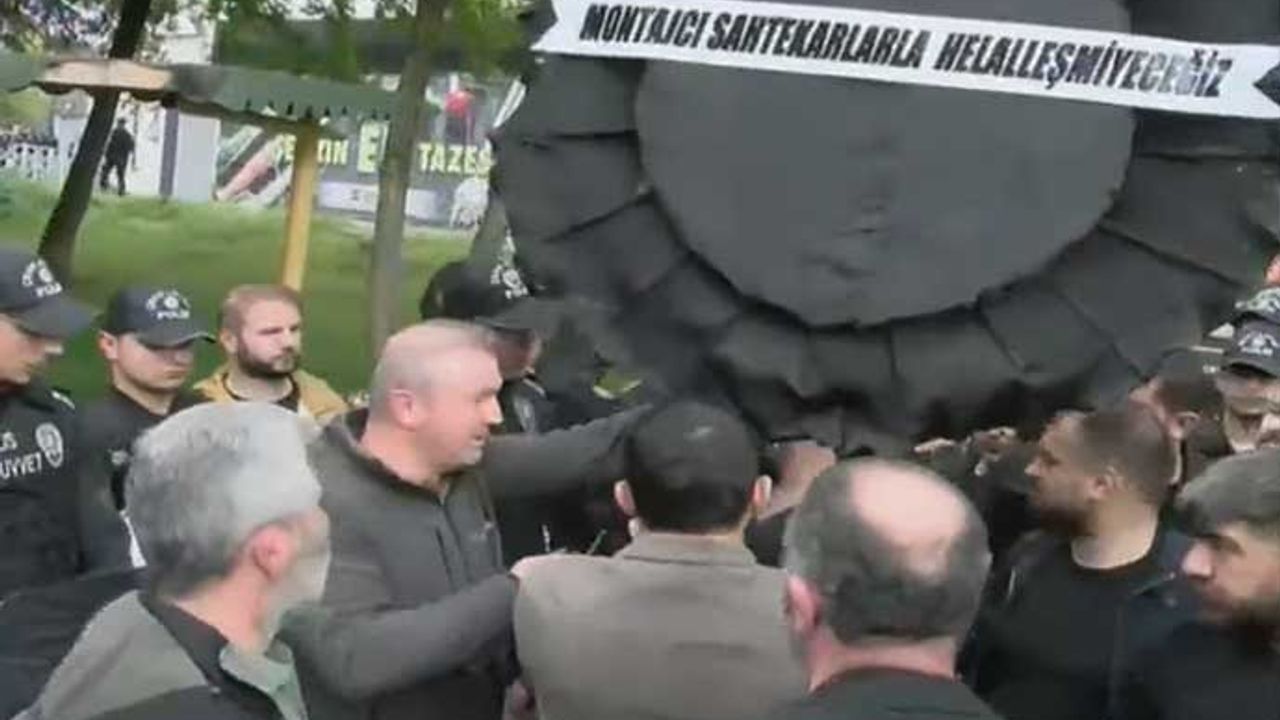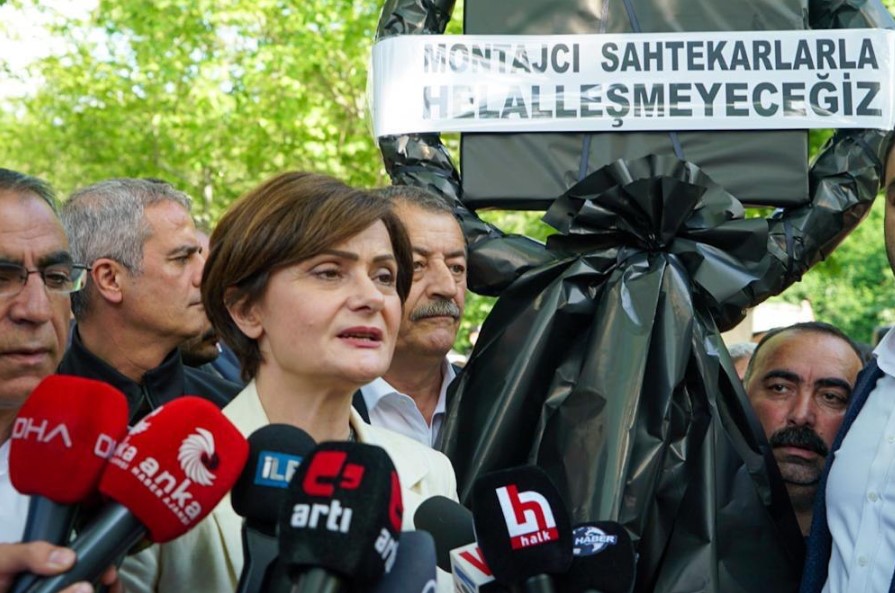 CHP İstanbul İl Başkanı Canan Kaftancıoğlu ve CHP Ankara İl Başkanı Ali Hikmet Akıllı, AKP İstanbul İl Başkanlığı önüne protesto amaçlı siyah çelenk bıraktı.