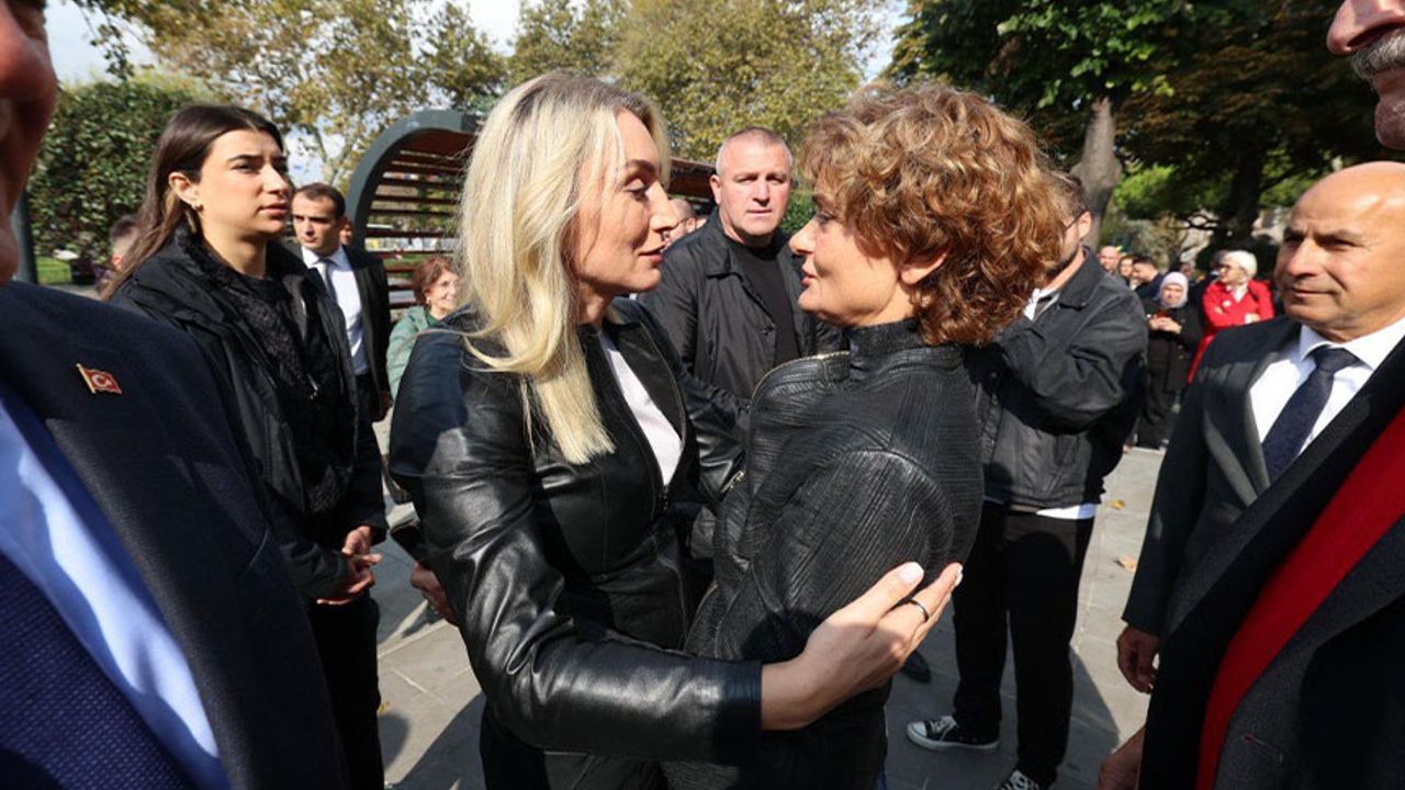 CHP'nin Cumhurbaşkanı adayı ve İstanbul Büyükşehir Belediye Başkanı Ekrem İmamoğlu'nun eşi Dilek İmamoğlu konuşurken Kaftancıoğlu da destek için arkasında görüldü.