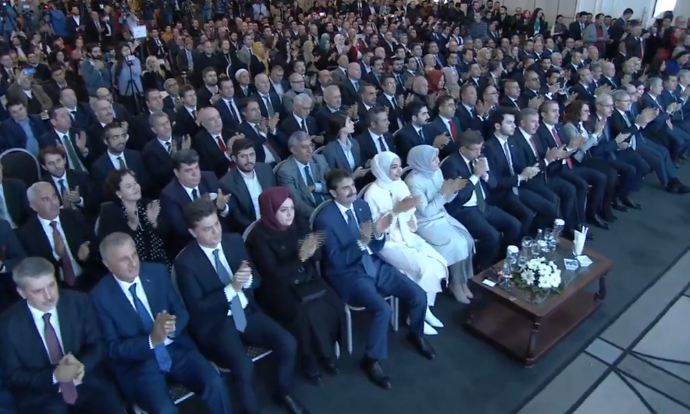 Ahmet Davutoğlu'nun sol kısmında kurucular kurulundaki en genç isim olan 22 yaşındaki İsmail Günaçar'ın oturduğu görüldü. Konuşmasında AKP'ye yönelik açık eleştirilerde bulunan Davutoğlu, "Türkiye’yi yönetenlerin iktidarda kalmanın dışında başka bir gündemleri bulunmamaktadır. Türkiye derdi olmayanların, millet derdi kalmayanların, adalet meselesi olmayanların milletimizin geleceği için söyleyecekleri de kalmamıştır." dedi.