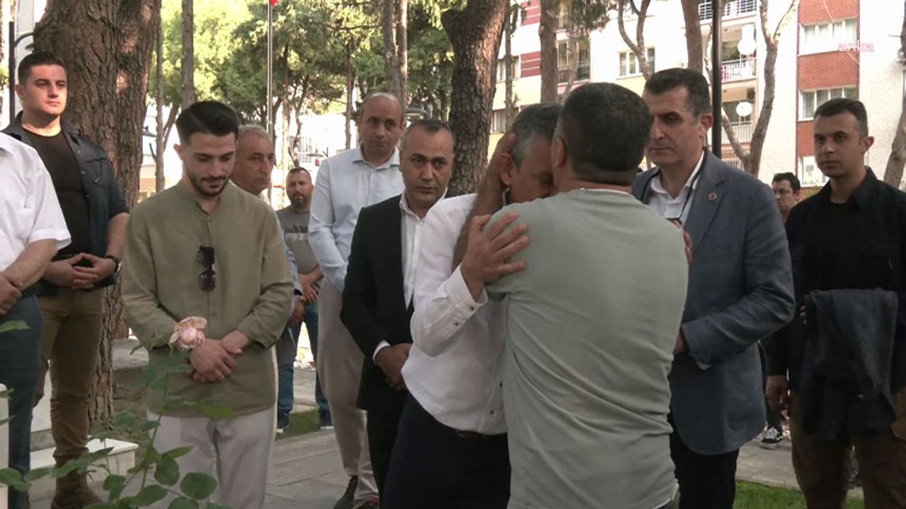 Özel, şehitlikte Enis Budak’ın kabrine çiçek bıraktı ve babası Kibar Budak ile ikiz kardeşi Yunus Budak ile birlikte dua etti. Baba İkram Burak Özgür Özel’i alnından öptü.