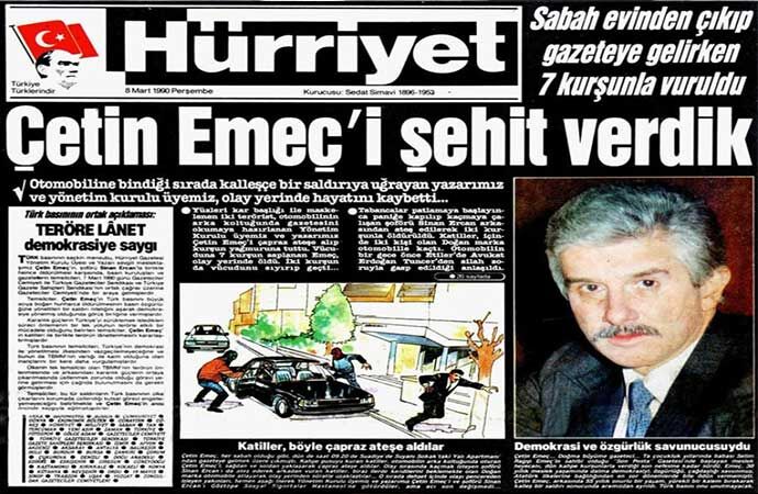 Usta gazeteci Çetin Emeç 31 yıl önce işine gitmek için evinden çıkıp aracına bindiği sırada şoförü Sinan Ercan'la birlikte katledildi. 7 Mart 1990 günü Suadiye'de bulunan evinden işe gitmek için çıkan gazeteci Çetin Emeç, otomobiline bindiği sırada kar maskeli caniler, usta gazetecinin otomobilinin önünü keserek tetiğe bastı.