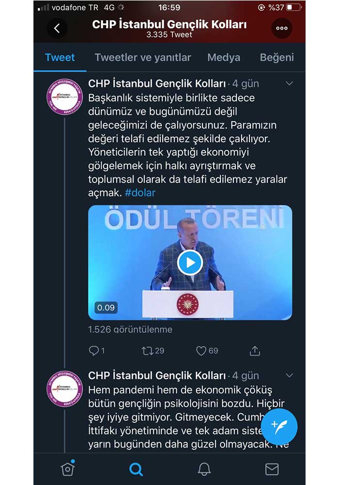 Cumhuriyet Halk Partili gençlerin Başkanlık Sistemi ve ekonomi politikalarını eleştirmesinin ardından sosyal medya hesabına kısıtlama getirildi.