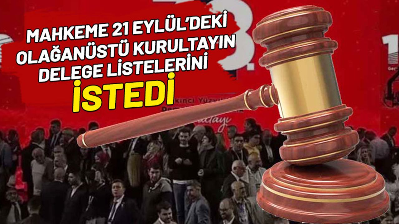 CHP 38. Kurultay'ı davasında mahkeme ara kararını verdi. Kurultay davası tedbirsiz olarak 24 Ekim'e ertelendi. CHP kurultayı davasına bakan mahkeme, 21 Eylül Olağanüstü Kurultayı yapıldıktan sonra delege listesi ve kurultay seçim sonucu birleştirme tutanaklarının dava dosyasına gönderilmesini istedi.