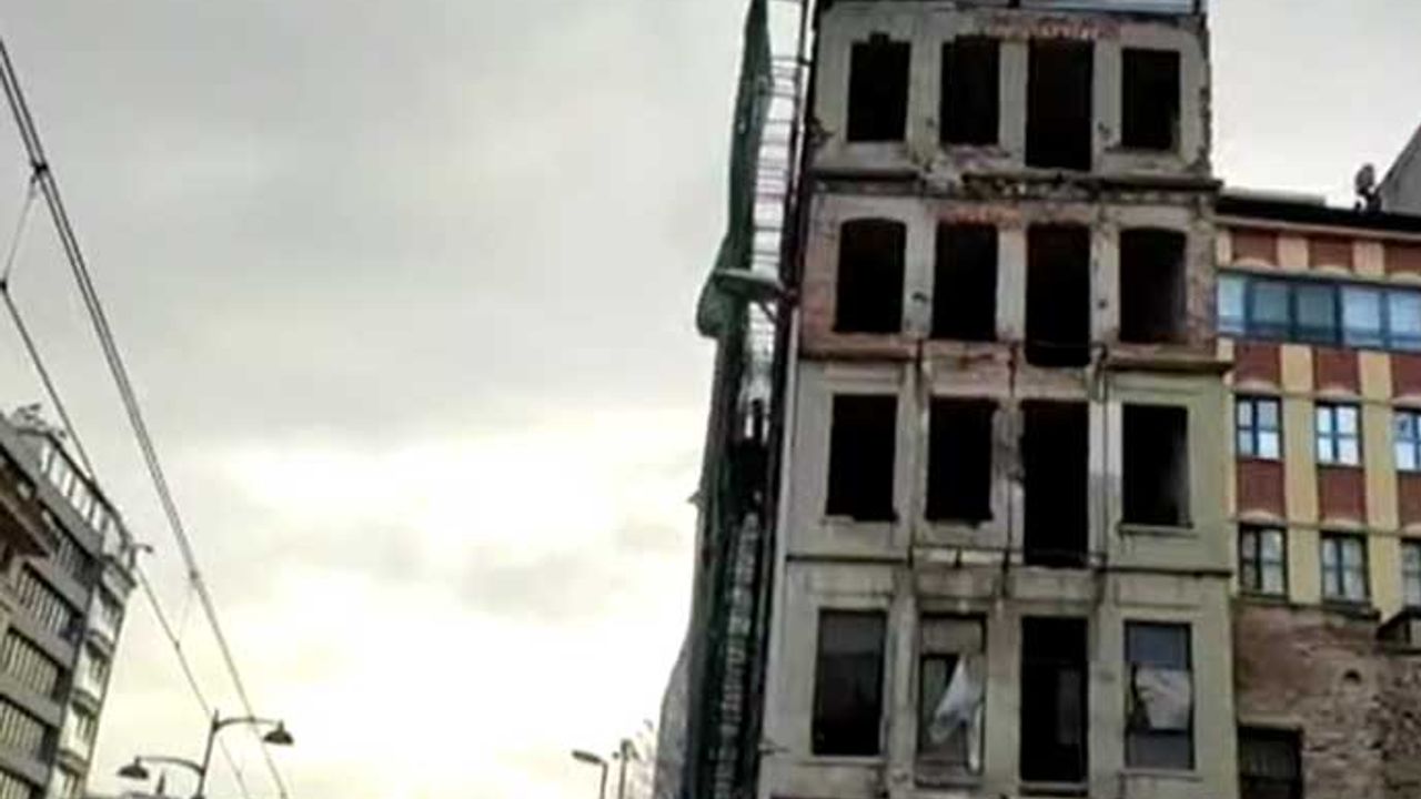 Karaköy’de tramvay seferlerinin durdurulmasına neden olan 5 katlı metruk bina tamamen çöktü.