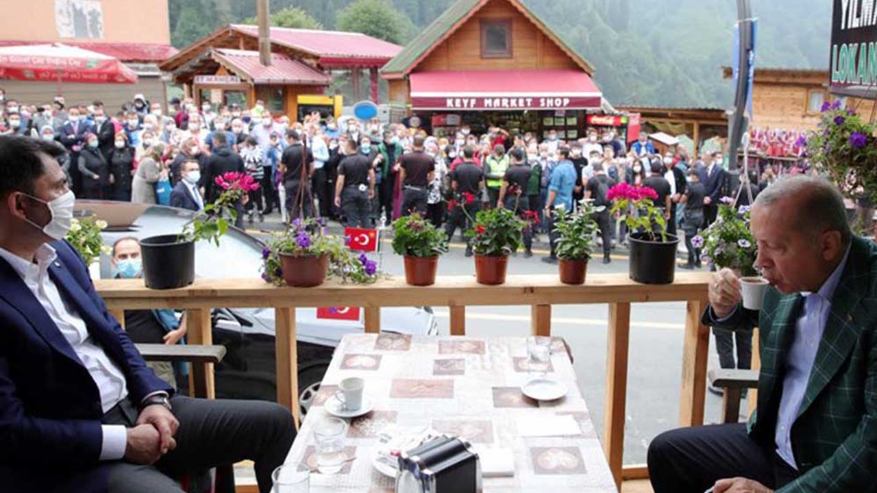 AKP Genel Başkanı ve Cumhurbaşkanı Erdoğan Rize programının 2. gününde dünyaca ünlü Çamlıhemşin ilçesinin Ayder Yaylası'na çıktı. Burada kahve içerken çekilen bir görüntü dikkat çekti.
