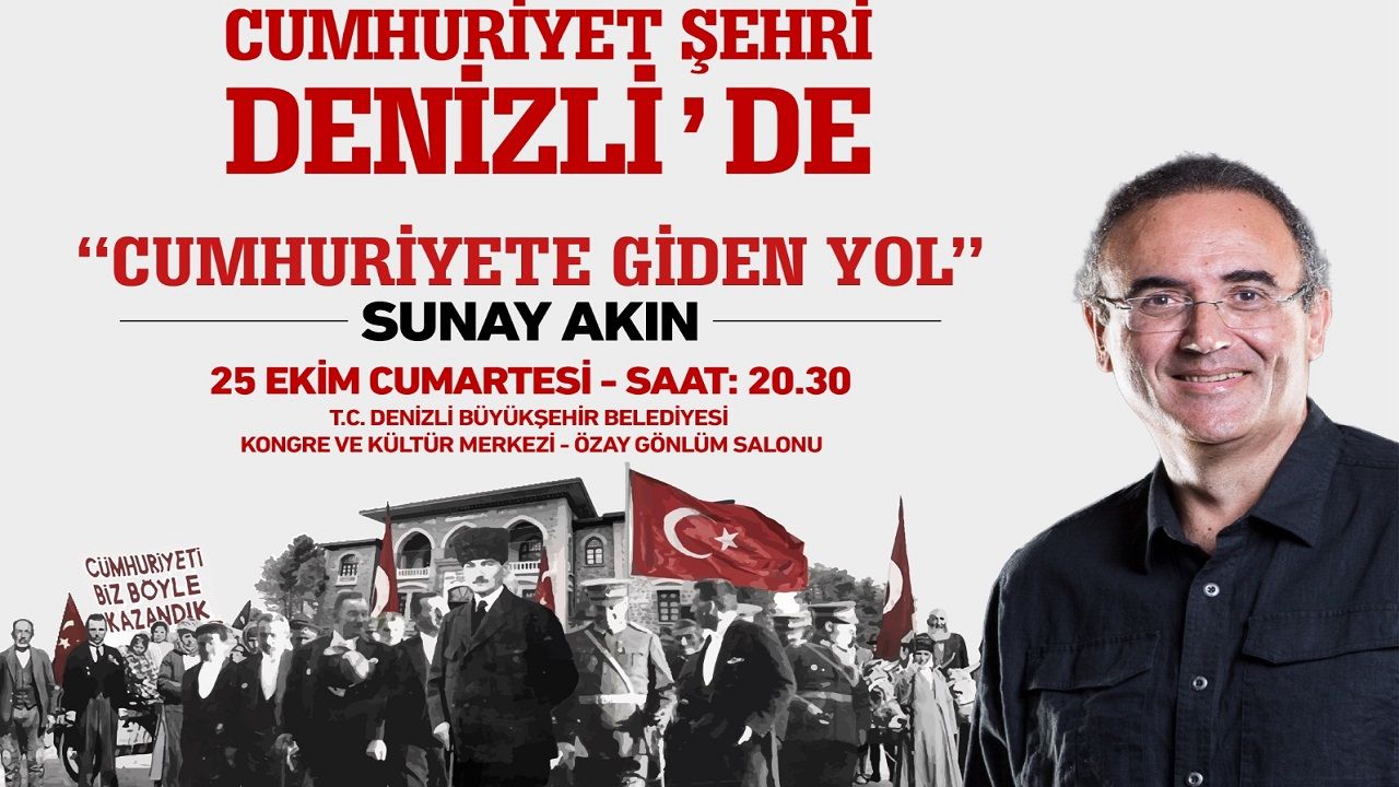 25 Ekim Cumartesi 20.30’da ise Denizli Büyükşehir Belediyesi Kongre ve Kültür Merkezi’nde Türkiye’nin en iyi hikaye anlatıcıları arasında kabul edilen ünlü yazar ve şair Sunay Akın, “Cumhuriyete Giden Yol” adlı söyleşisiyle Denizlililerle buluşacak. Kutlamalar, 27 Ekim’de Denizli Büyükşehir Belediyesi Kongre ve Kültür Merkezi’nde sahne alacak usta sanatçı Hüsnü Arkan konseriyle devam edecek. Denizli Büyükşehir Belediyesi’nin tüm vatandaşlara açık ve ücretsiz olarak düzenlediği konserler ve Sunay Akın söyleşisi için biletler, e-bilet.denizli.bel.tr adresinden temin edilebilecek.