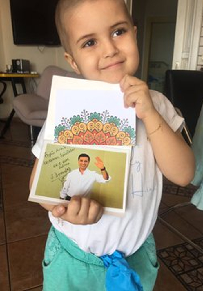 Yaklaşık 3 yıldır Edirne F Tipi Cezaevi’nde hapis bulunan eski HDP Eş Genel Başkanı Selahattin Demirtaş, aylardır lösemiyle mücadele eden ve babasından nakledilen ilikle sağlığına kavuşmaya başlayan 4 yaşındaki Öykü Arin Yazıcı’ya üzerinde kuş figürü olan bir kartpostal gönderdi. Demirtaş, Öykü Arin’e bir de “Kocaman öpücükler” notuyla kendisinin cezaevinden el sallayan bir fotoğrafını da gönderdi.