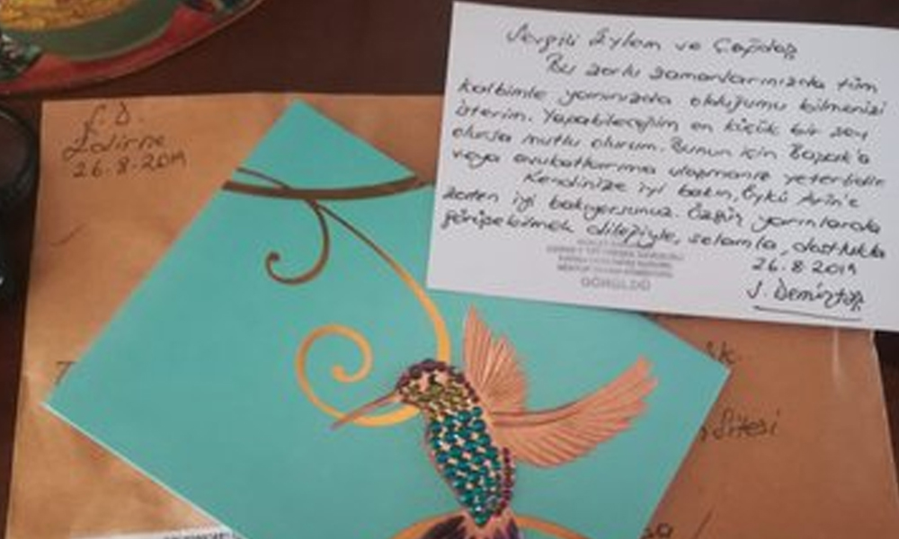 Demirtaş’ın gönderdiği kartpostalın fotoğraflarını paylaşan Eylem Şen de “Bir kuşun kanadında evimize özgür yarınlar umudu geldi... Sevgili Selo, öykülerini anlattığı kuşlardan birini Öykü Arin’e göndermiş. Çok teşekkür ederiz. Umut kalbimizden, özgür yarınlar düşümüzden hiç eksik olmasın” dedi.