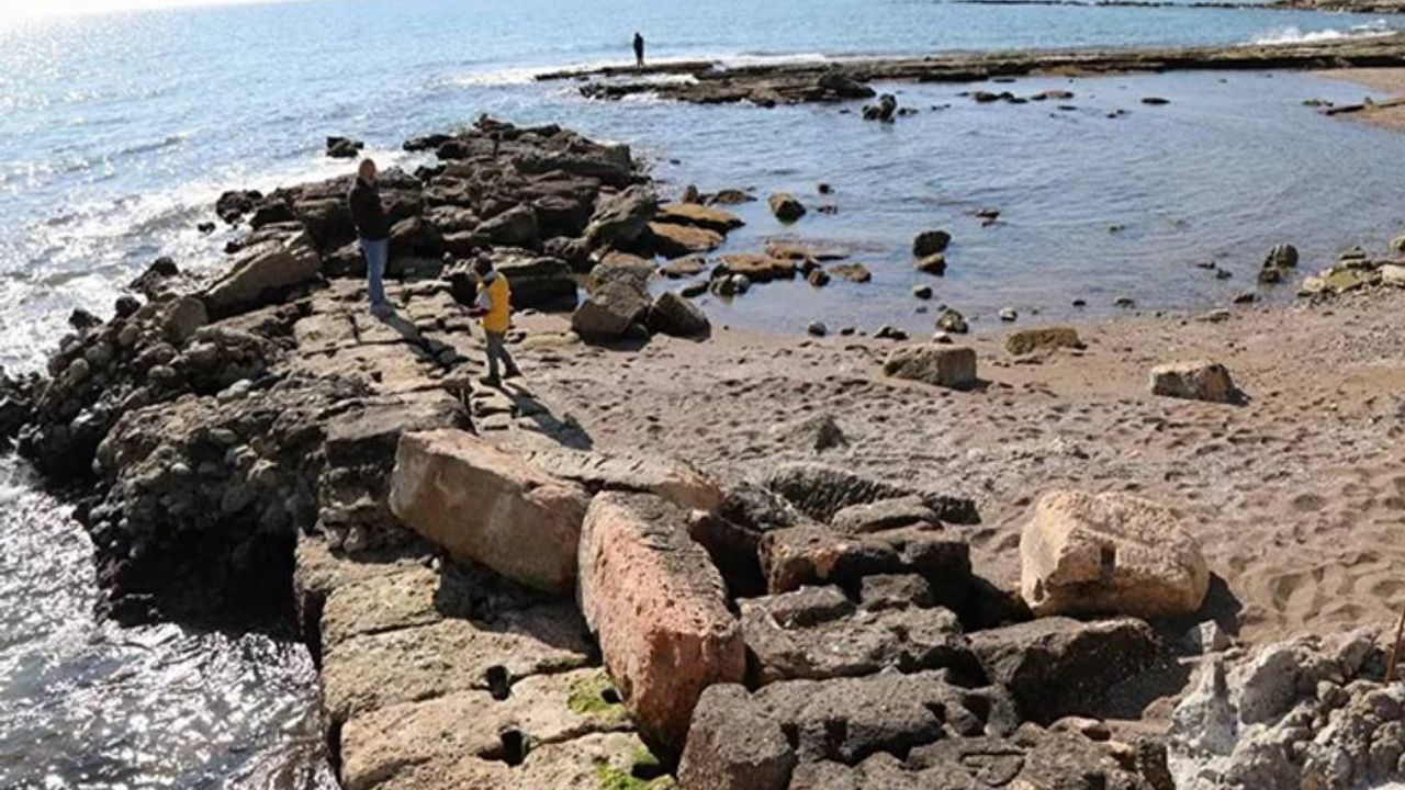 Mersin'in Mezitli ilçesinde, Soli Pompeipolis Antik Kenti'ndeki limanın bir bölümü, deniz suyunun çekilmesiyle görünür hale geldi.
