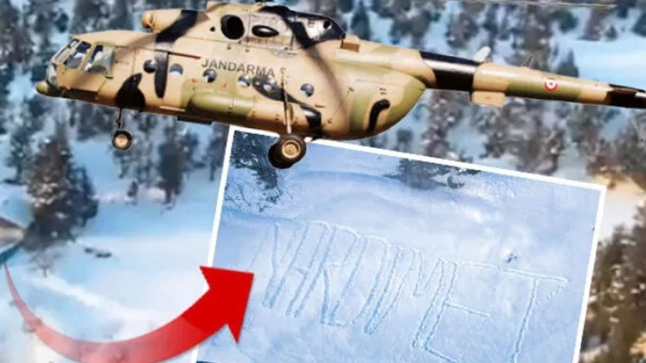 Karın üzerindeki yazıyı fark ederek helikopter ile iniş yapan Jandarma Pilot Albay Aytekin Çakırerk, yaşadıklarını şöyle anlattı:
