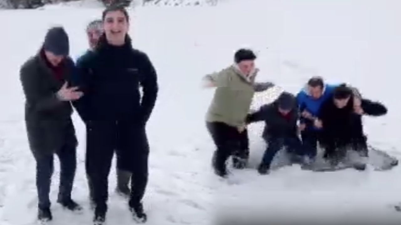 Çaykara ilçesindeki Uzungöl’e giden Tarık Buğra Kaycı (25), Berat Küskün (25) ve Miraç Yazıcı (25) soğuk hava nedeniyle yüzeyi buz tutan Haldizen Deresi üzerinde zıplayarak video çekmek istedi. Zıplayan gruba kısa süre sonra bir arkadaşları da dahil oldu. Ancak bu sırada buz kütlesi kırıldı, 4 kişi bir anda suya düştü. Arkadaş grubu kendi imkanlarıyla sudan çıktı. O anlar, kıyıda bulunan arkadaşları tarafından cep telefonu kamerasıyla kayda alındı. Görüntüler, paylaşıldığı sanal medyada izleyenleri gülümsetti.