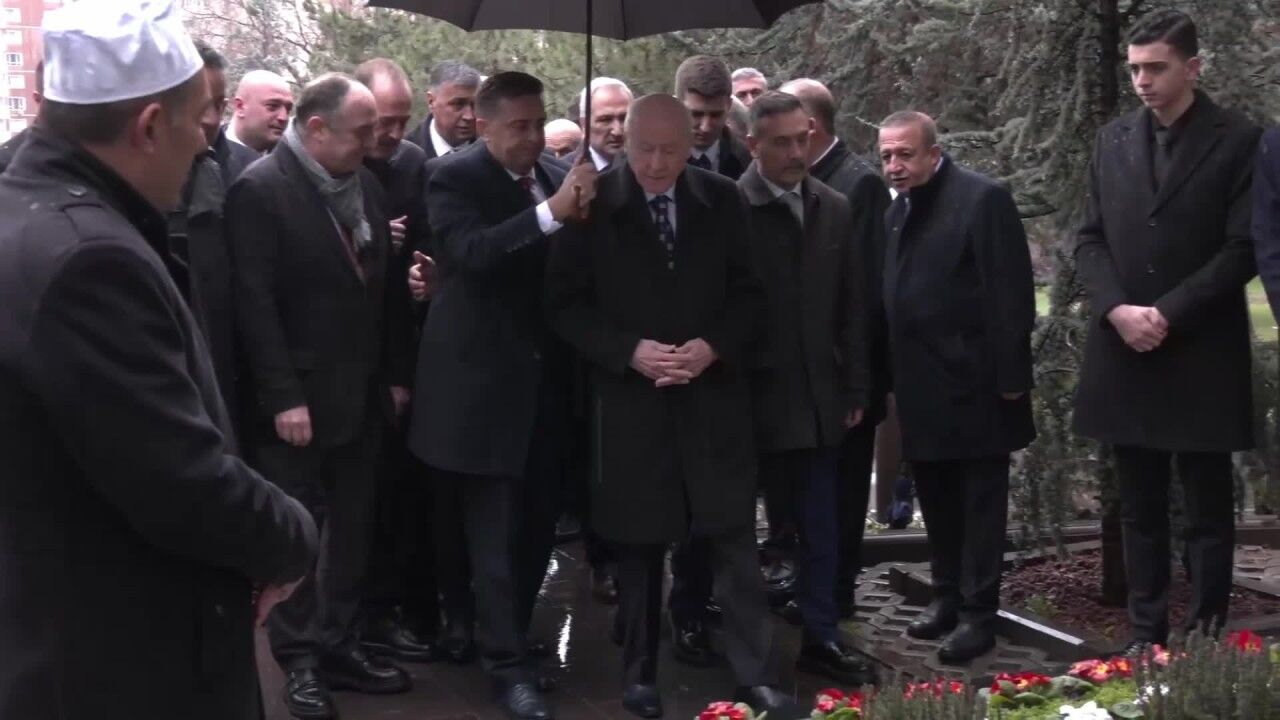 Bahçeli, bayram namazını kıldıktan sonra Alparslan Türkeş’in kabrini ziyaret etti.