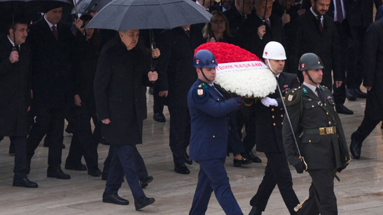 TBMM Başkanı Numan Kurtulmuş'un, Atatürk Anıtı'na kırmızı ve beyaz karanfillerden oluşan çelenk bırakmasının ardından saygı duruşunda bulunuldu, İstiklal Marşı okundu.