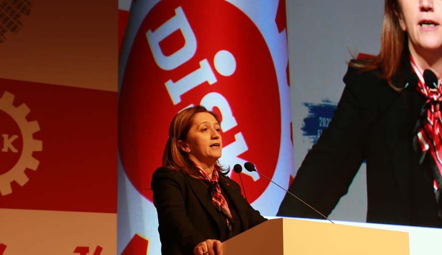 DİSK Genel Başkanı Arzu Çerkezoğlu konuşmasında, "DİSK Uluslararası dayanışmanın en güzel örneklerini, 12 Eylül darbesinin ardından yaşadı" dedi.