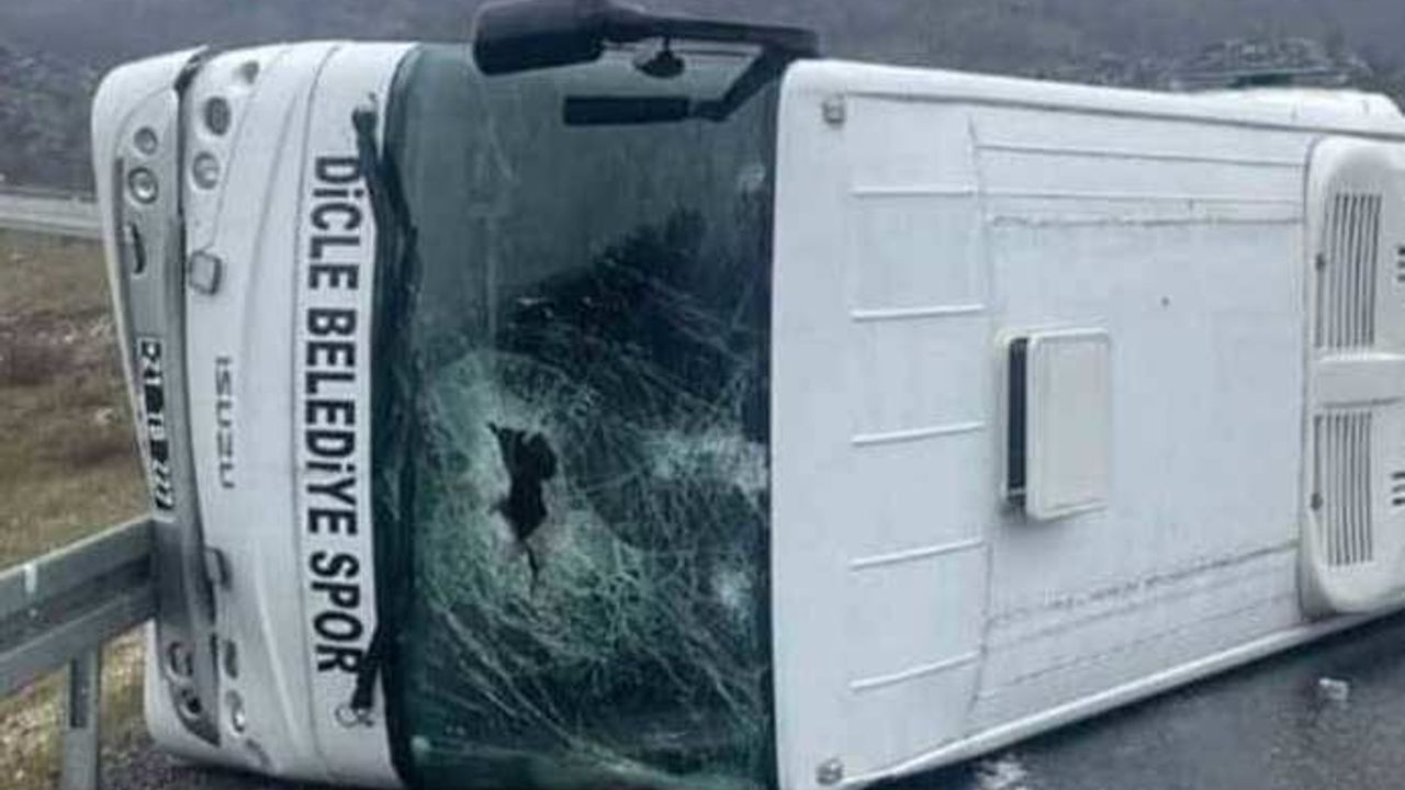 Diyarbakır'da Dicle Belediyespor futbolcularını taşıyan midibüs devrildi. Kazada aralarında futbolcuların da olduğu 10 kişi yaralandı.