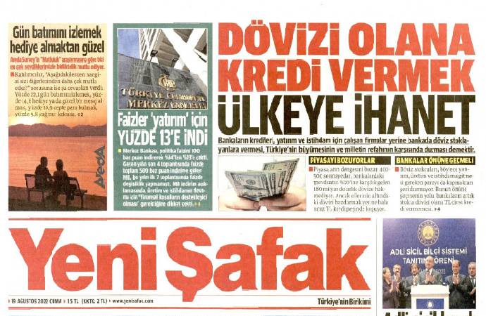 Merkez Bankası Başkanı Şahap Kavcıoğlu ile iş insanları arasında yaşanan döviz tartışmasına Yeni Şafak da dahil oldu. Gazete haberinde, dövizi olan şirketlere kredi verilmesi, "ülkeye ihanet" olarak nitelendirildi.