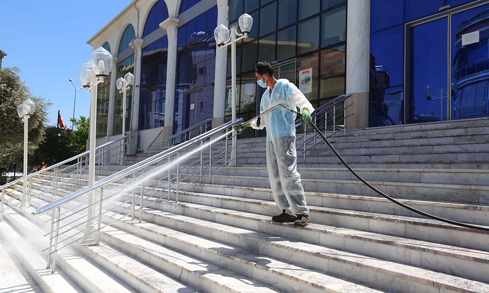 Koronavirüs salgınında normalleşme sürecine girilmesiyle birlikte camilerin bayram namazı için açılması ihtimalini gözeten Efeler Belediyesi, vatandaşların daha sağlıklı bir ortamda ibadet edebilmeleri için temizlik çalışmalarını sürdürüyor. Efeler Belediyesi Temizlik İşleri Müdürlüğü ekipleri, Yavuz Sultan Selim Camii’nde temizlik çalışmaları gerçekleştirdi. Avluyu, cami girişini ve şadırvanı dezenfekte eden ekipler, caminin içini de özenle temizledi. Efeler Belediye Başkanı M. Fatih Atay, yaklaşan Ramazan Bayramı’nın kentte sağlıklı bir şekilde kutlanması için gerekli tedbirleri aldıklarını söyleyerek, “Virüsün ülkemizde görüldüğü ilk günden bu yana ortaya koyduğumuz mücadele ile ilçemizde virüsün yayılma tehlikesini olabildiğince azalttık. Bildiğiniz gibi koronavirüs salgınında normalleşme sürecine geçilmesiyle İçişleri Bakanlığı bazı illerimizde sokağa çıkma yasağını kaldırdı. İlçemiz de sokağa çıkma yasağı uygulanmayan ilçelerden oldu. Yasağın kalkmasıyla birlikte Ramazan Bayramı’nda mezarlıkları ziyaret edecek olan vatandaşlarımız için tedbirler aldık. Ekiplerimiz temizlik ve ilaçlama çalışmaları ile halkımızın sağlıklı şartlar altında mezarlıkları ziyaret edebilmeleri için emek harcıyor. Camilerimizi de bayram namazı için açılma ihtimalini göz önüne alarak temizlemeye devam ediyoruz” diye konuştu.