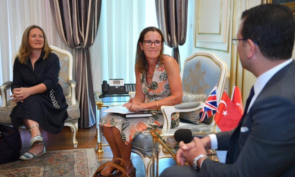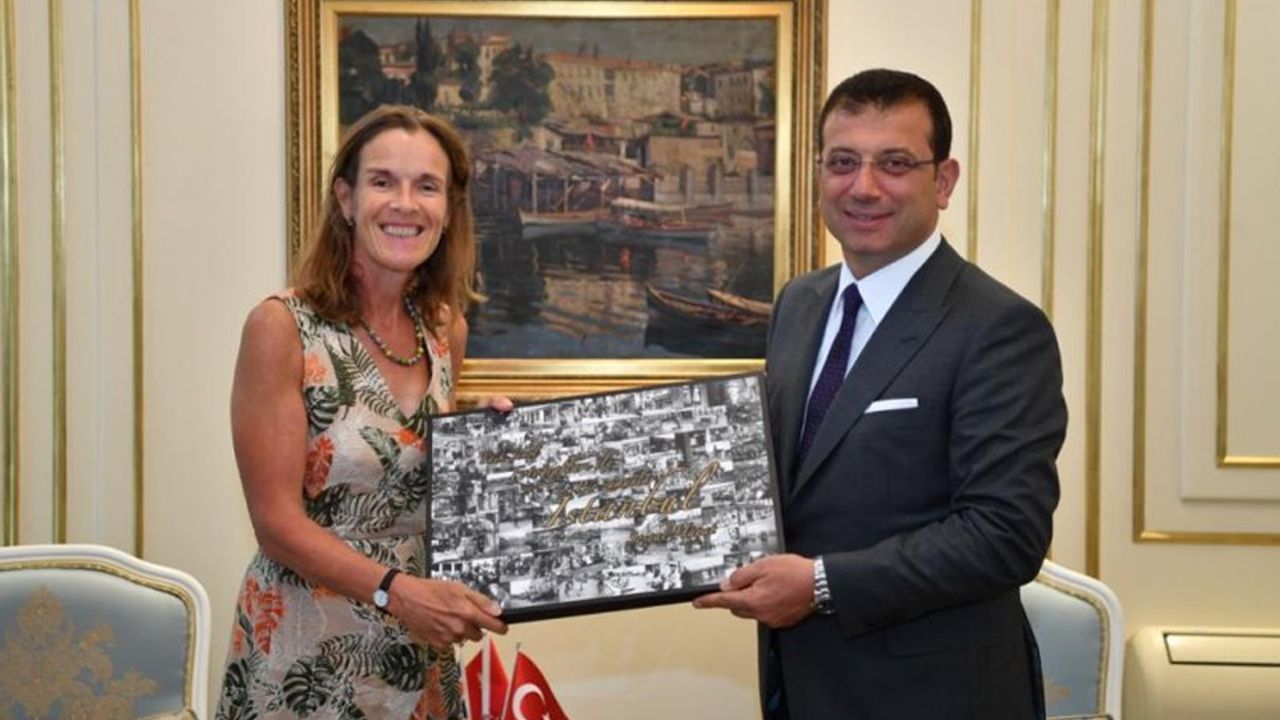 İstanbul Büyükşehir Belediye (İBB) Başkanı Ekrem İmamoğlu, İngiltere İstanbul Başkonsolosu Judith Slater'i, Saraçhane'deki makam odasında ağırladı.