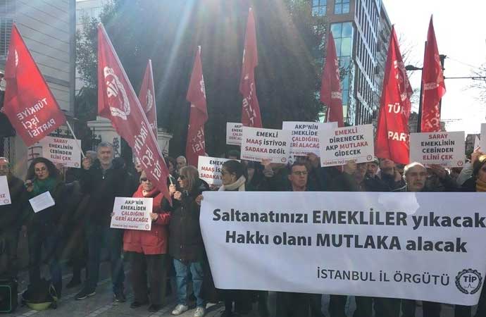TİP Emekliler Grubu adına yapılan açıklamada, “Emekçilerin ve emeklilerin cebinden iktidar marifeti ile çalınıp yandaş çetelerin ceplerine ve kasalarına aktarılan haklarımızın hesabını er ya da geç bu iktidardan ve sorumlularından soracağız” denildi.