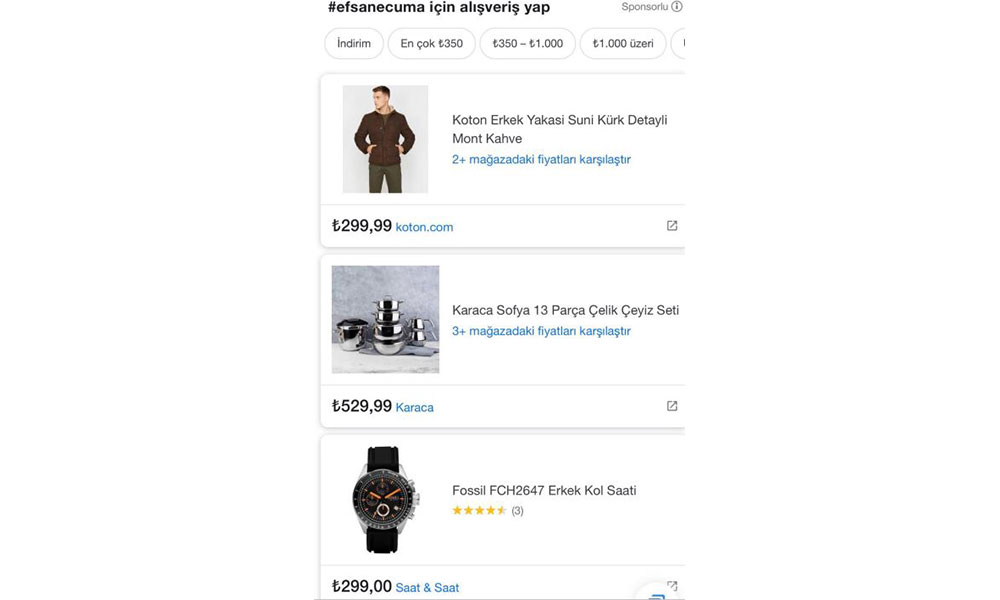 İnternette Google'ın arama çubuğuna #EfsaneCuma diye yazılınca, görünüyor ki, hemen hemen tüm firmalar müşterilerine böyle çağrıda bulunuyor.