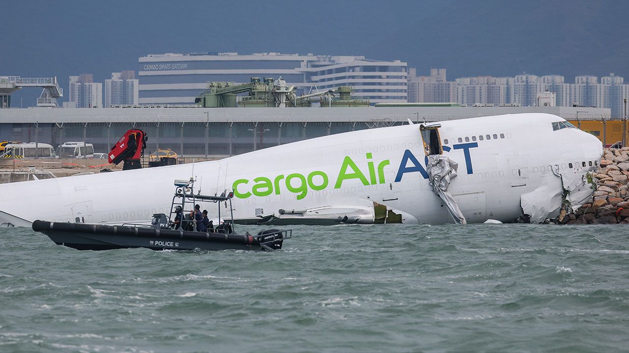 Çin’in Hong Kong bölgesindeki Hong Kong Uluslararası Havalimanı’nda kuzey pistinden çıkan bir kargo uçağı iniş sırasında pistten çıktı ve denize sürüklendi.